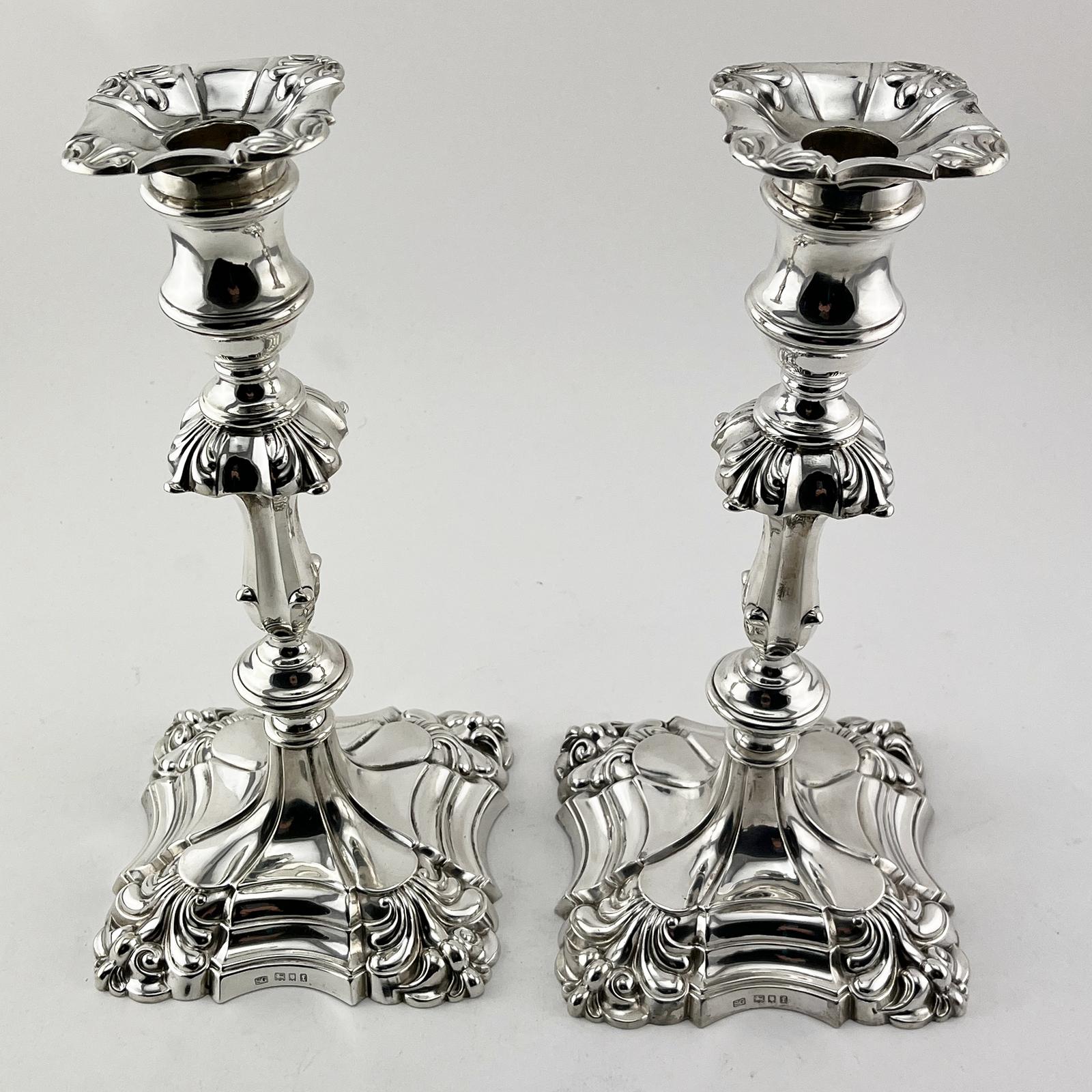 Pair of George II Style Garrard & Co Silver Candlesticks