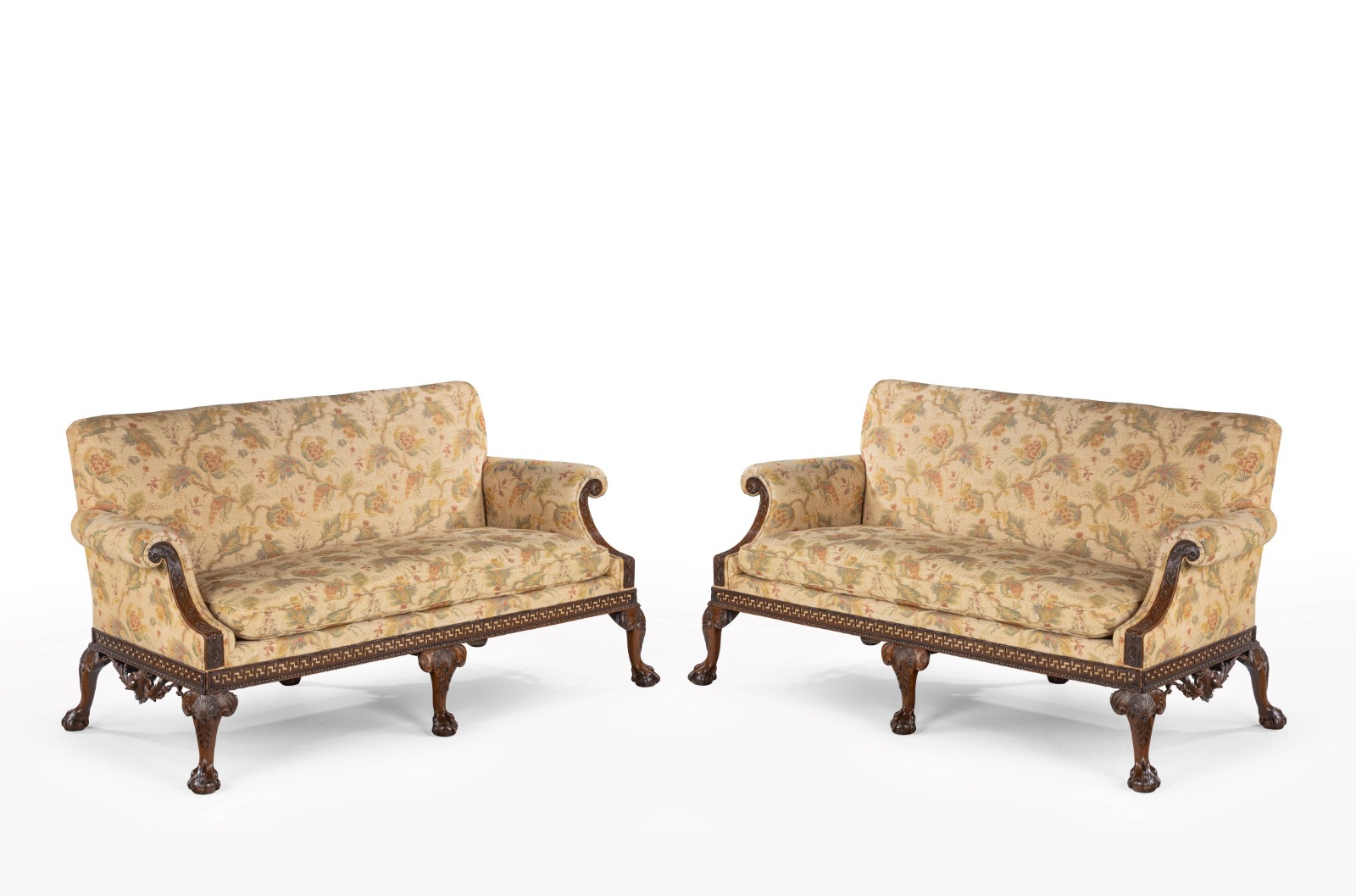 Pair of George II Style Mahogany Framed Sofas c.1900