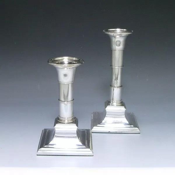 Pair of George III Antique Silver Rare Telescopic Candlesticks Made in 1798