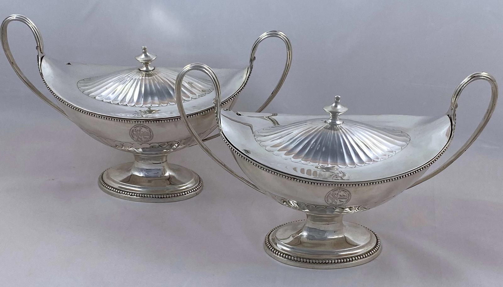 Pair of George III Antique Silver Sauce Tureens Made in 1784