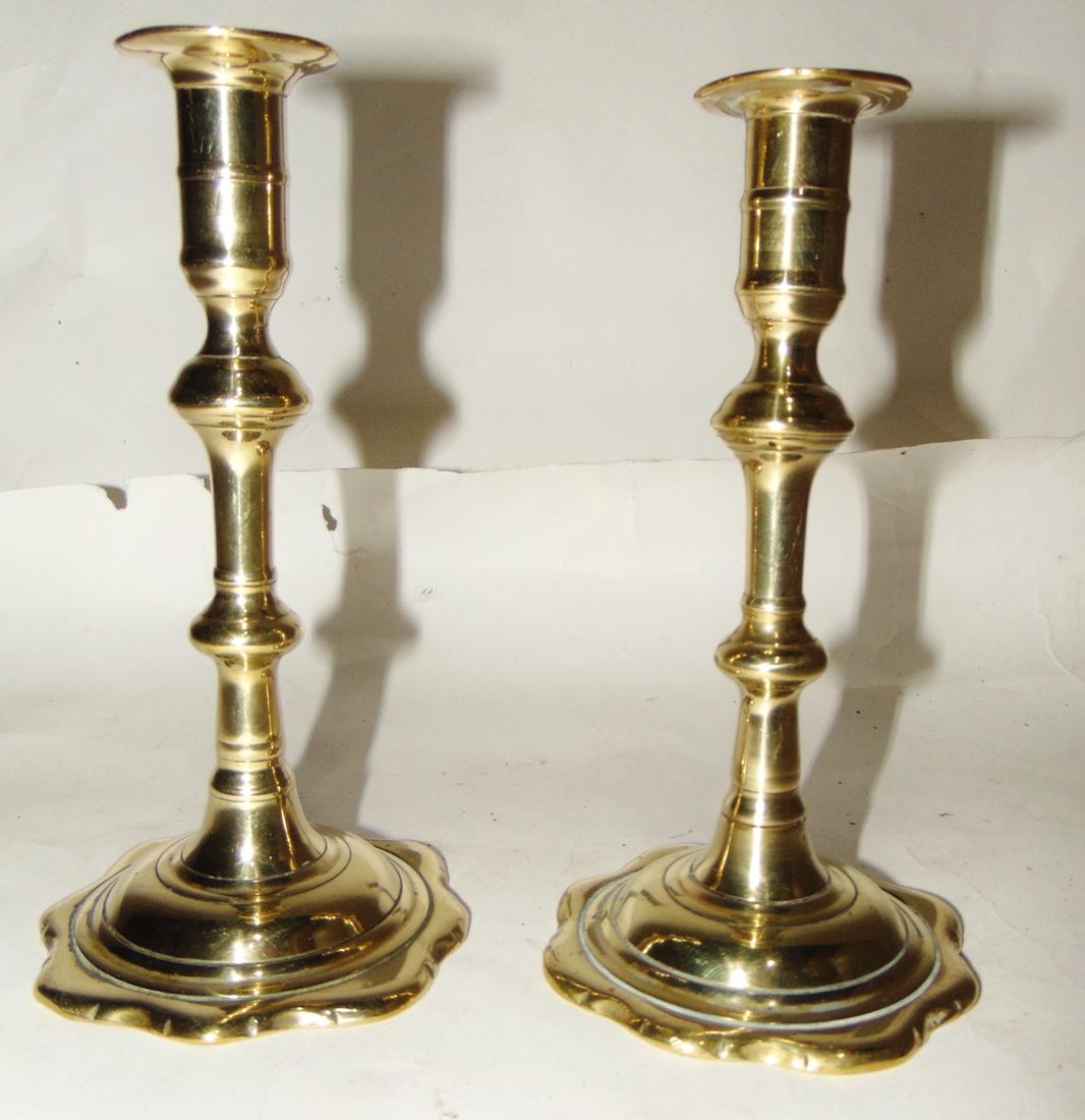Pair of George III Brass Petal Base Candlesticks