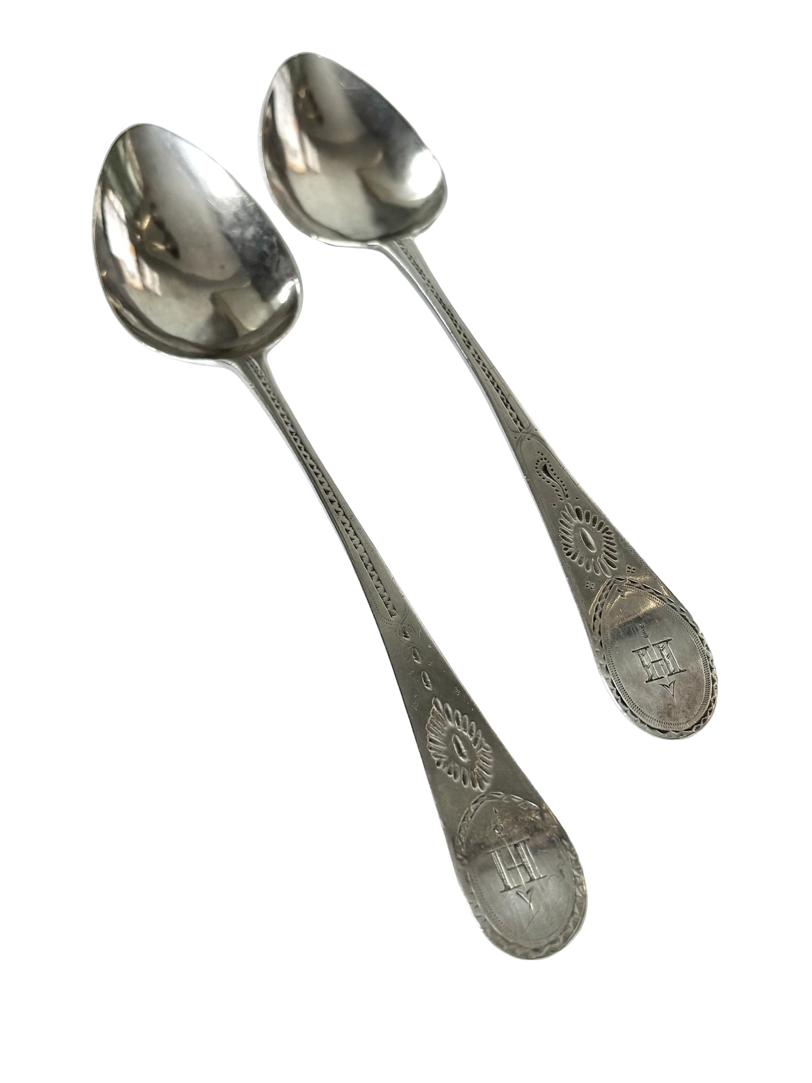 Pair of George III Bright-cut Silver Tablespoons - Richard Ferris Exeter 1798