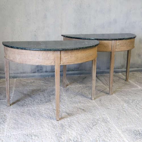 Pair Of George III c 1820 Oak Console Tables with Later Marble Tops