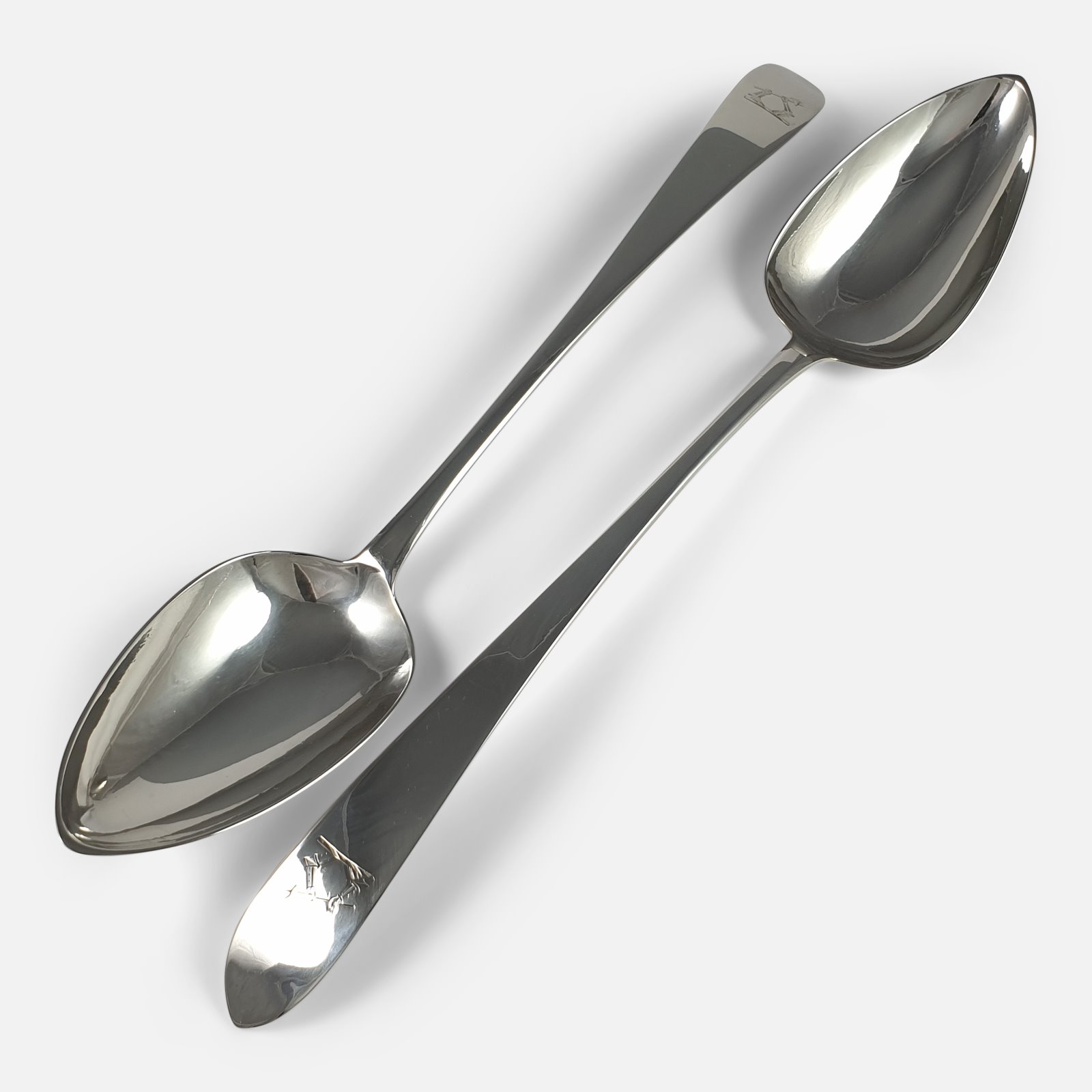 Pair of George III Irish Silver Celtic Point Basting Spoons, John Keene, 1799