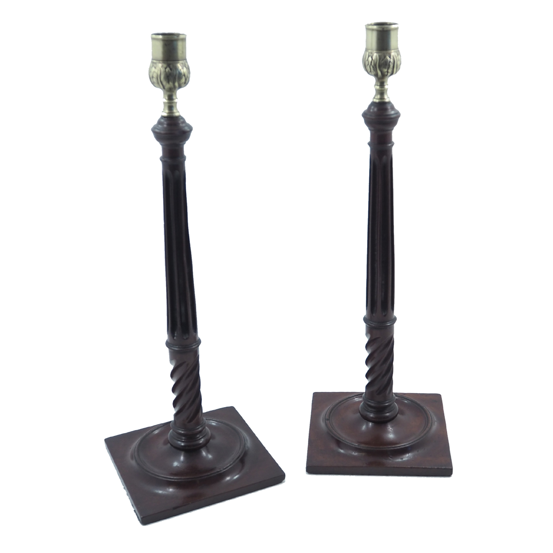Pair of George III Mahogany & Brass Candlesticks
