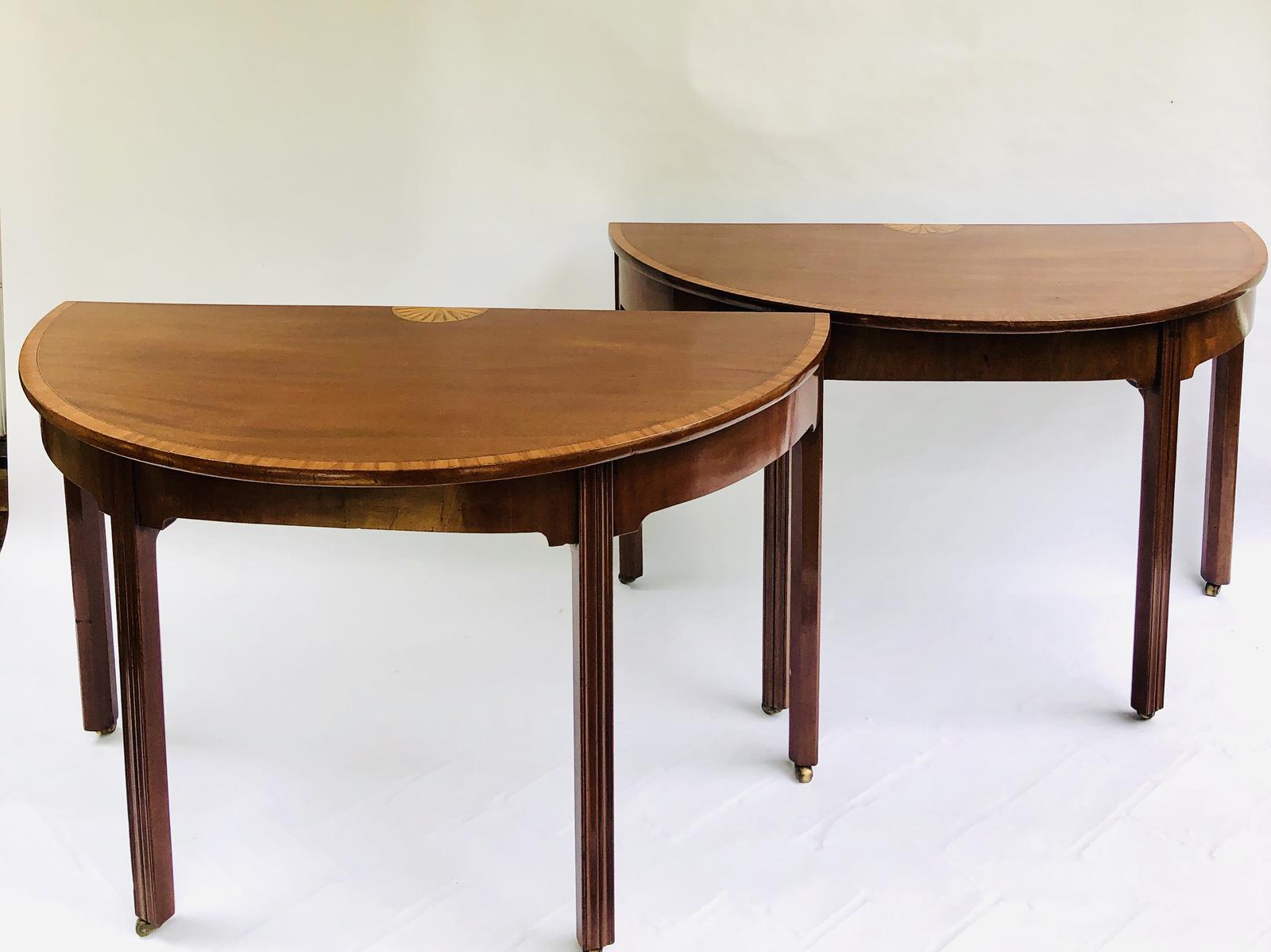Pair of George III Mahogany Demi Lune Console Tables