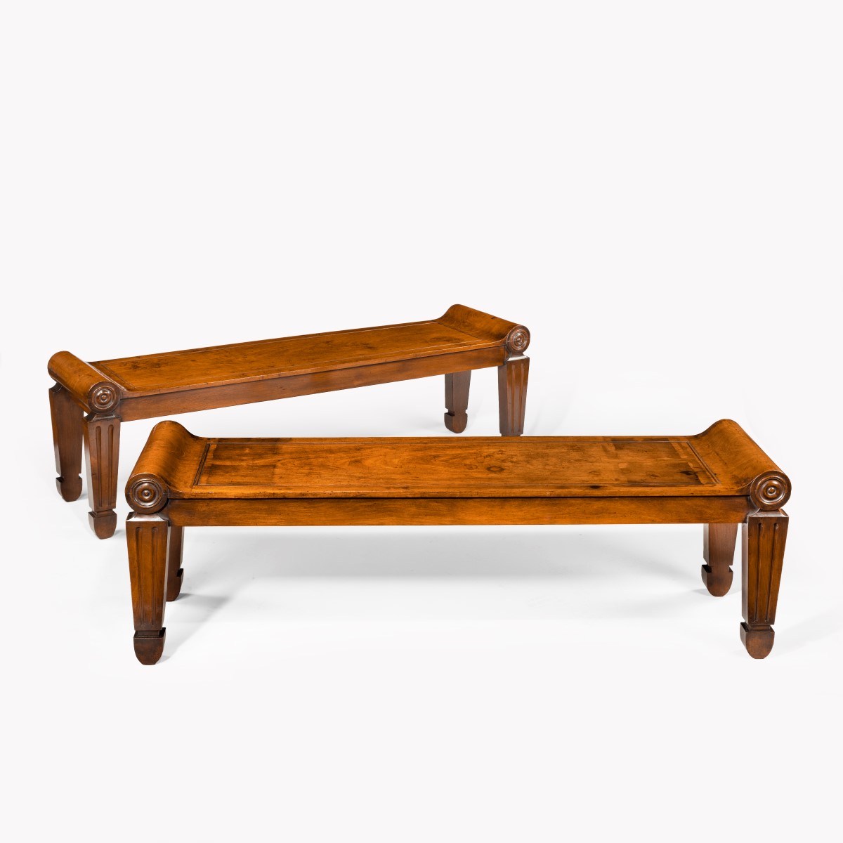 Pair of George III Mahogany Hall Benches in the manner of Marsh & Tatham