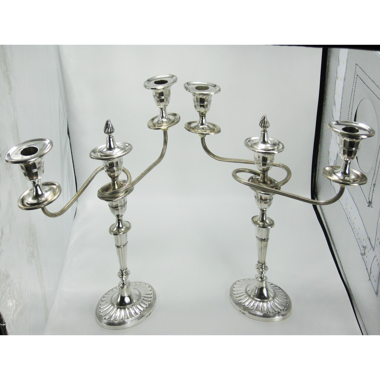 Pair of George III Style James Dixon & Son Silver Three Light Candelabra