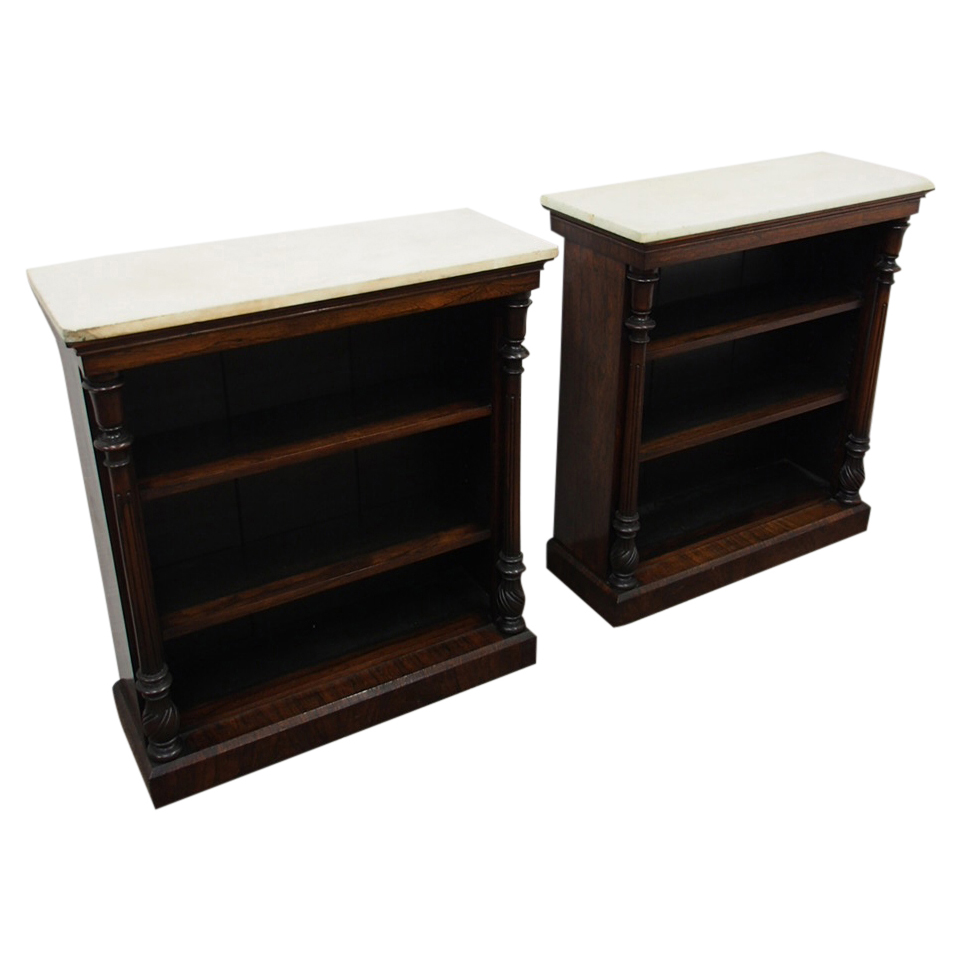 Pair of George IV Rosewood & Marble Top Open Bookcases c.1820