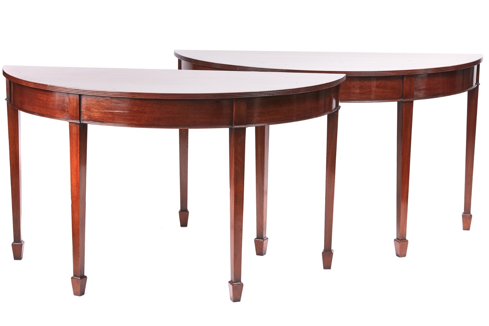 Pair of George Revival Mahogany Demi Lune Console Tables c.1900