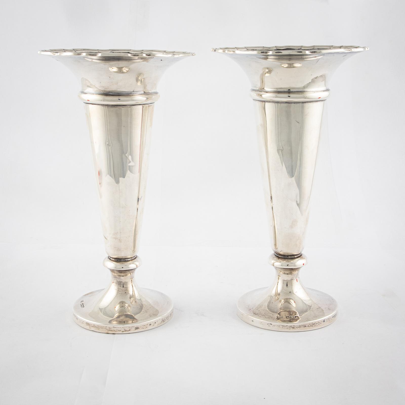 Pair of George V Silver Trumpet Vases