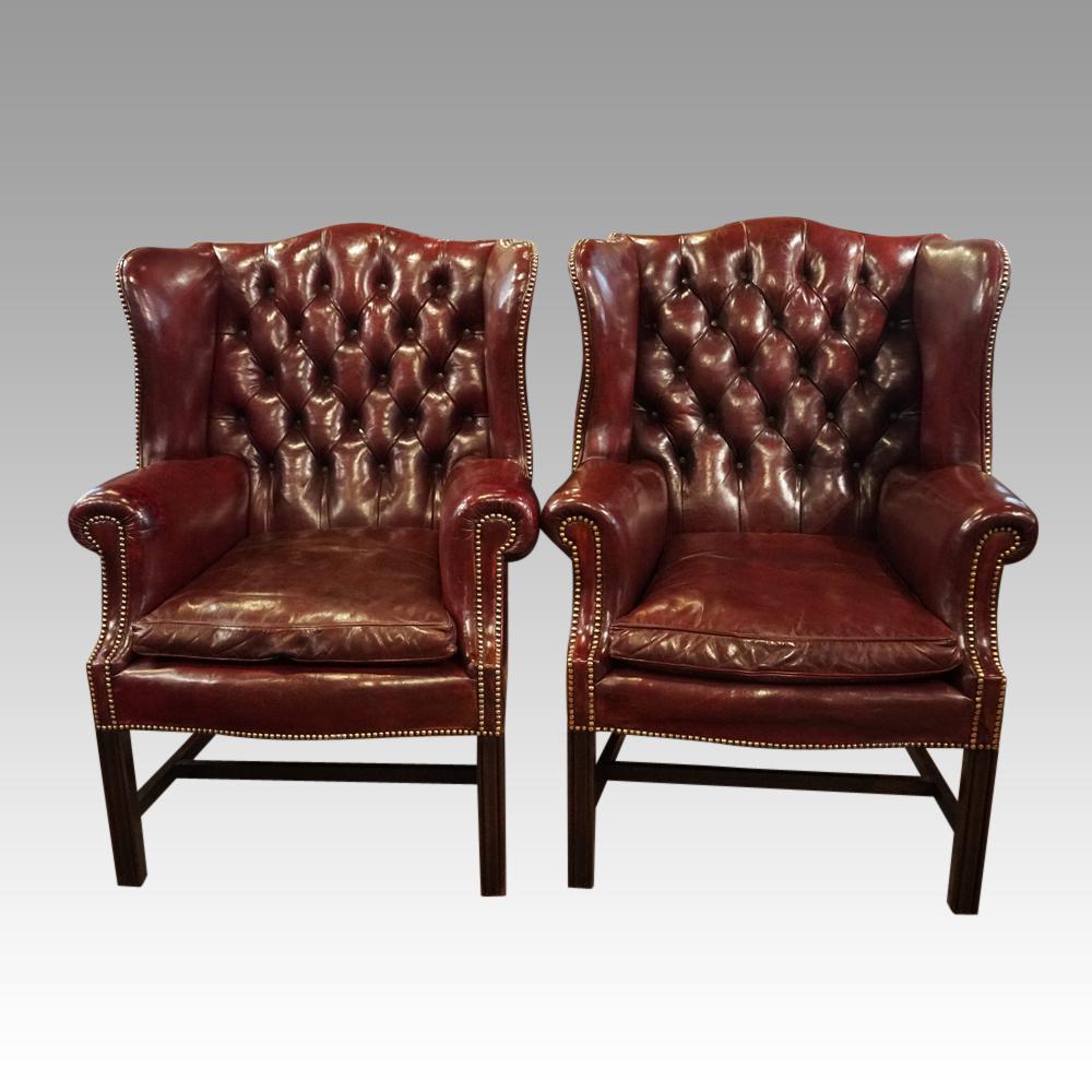 Pair of George VI Leather Wing Chairs