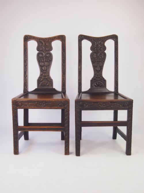 Pair of Georgian and Later Carved Oak Hall Chairs (1 of 1)