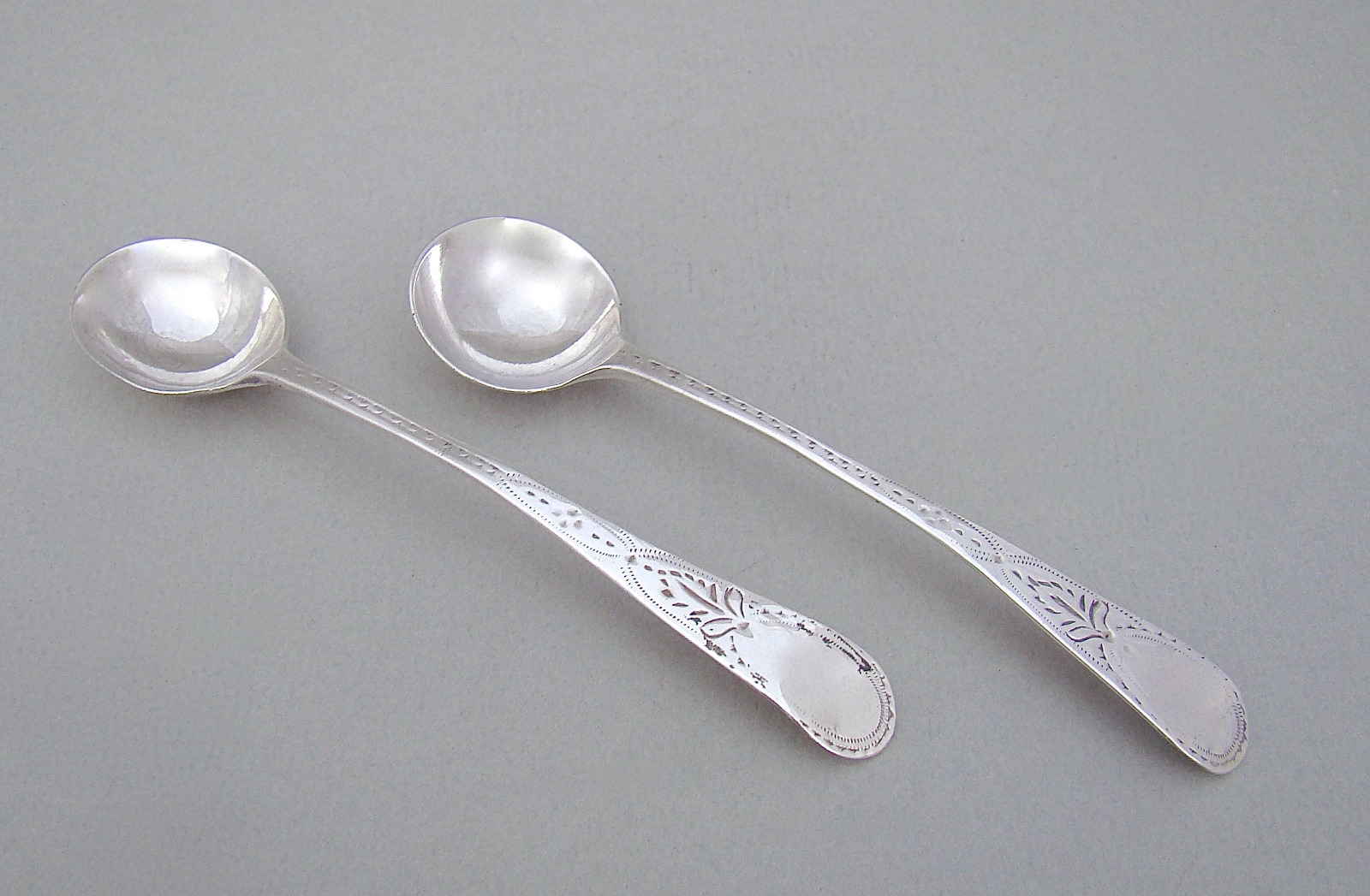 Pair of Georgian Bright-Cut Silver Salts Spoons, London 1798