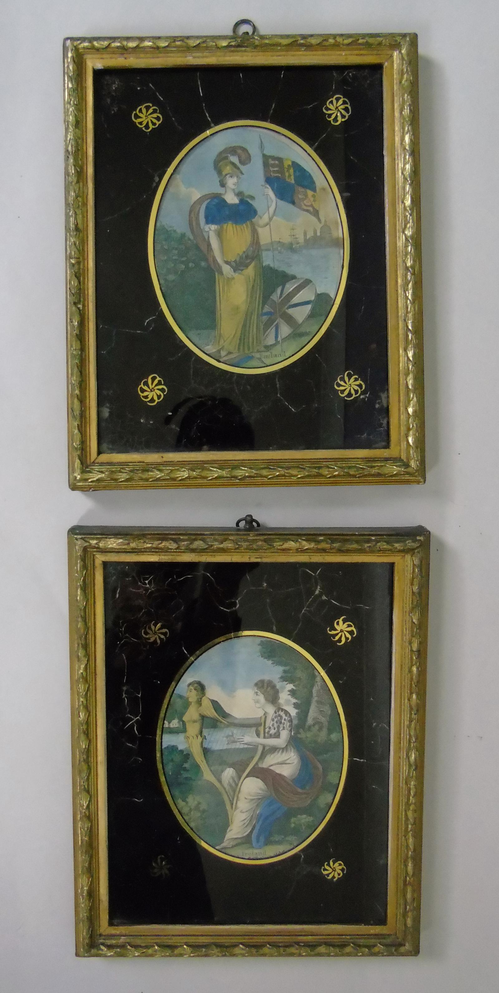 Pair of Georgian Engravings England and Ireland Verre Eglomise