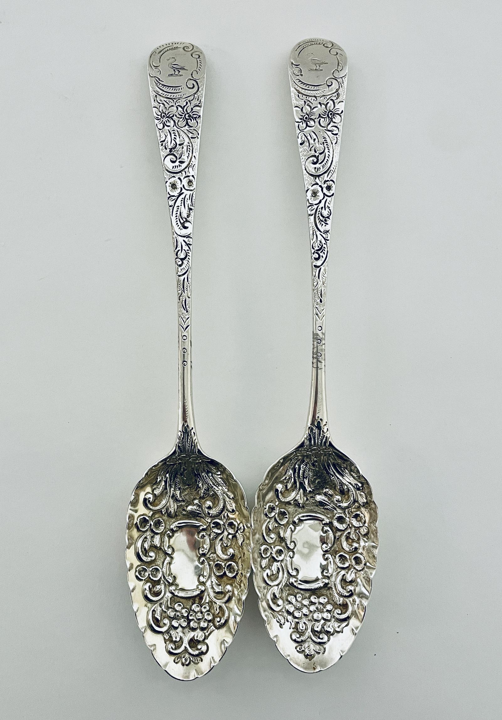 Pair of Georgian Exeter Solid Silver Berry Spoons