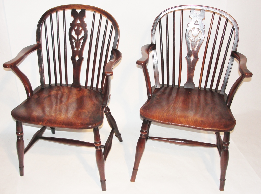 Pair of Georgian Fruitwood Windsor Elbow Chairs c.1800