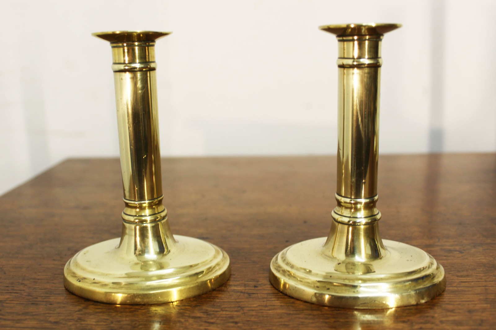 Pair of Georgian 'Gun Barrel' Brass Candlesticks.