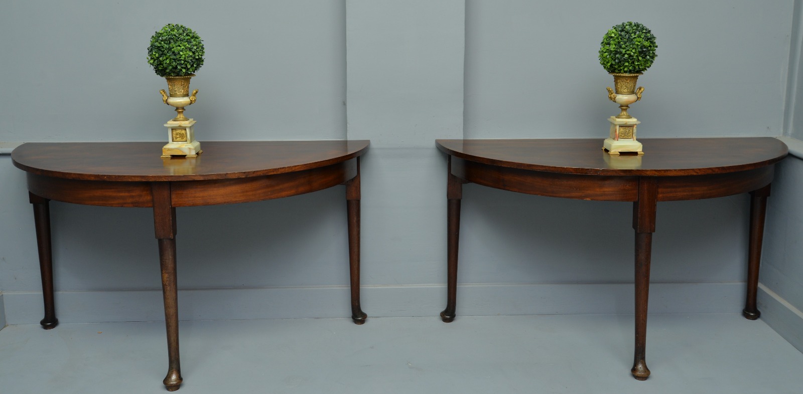 Pair of Georgian Mahogany Demi-Lune Console Tables