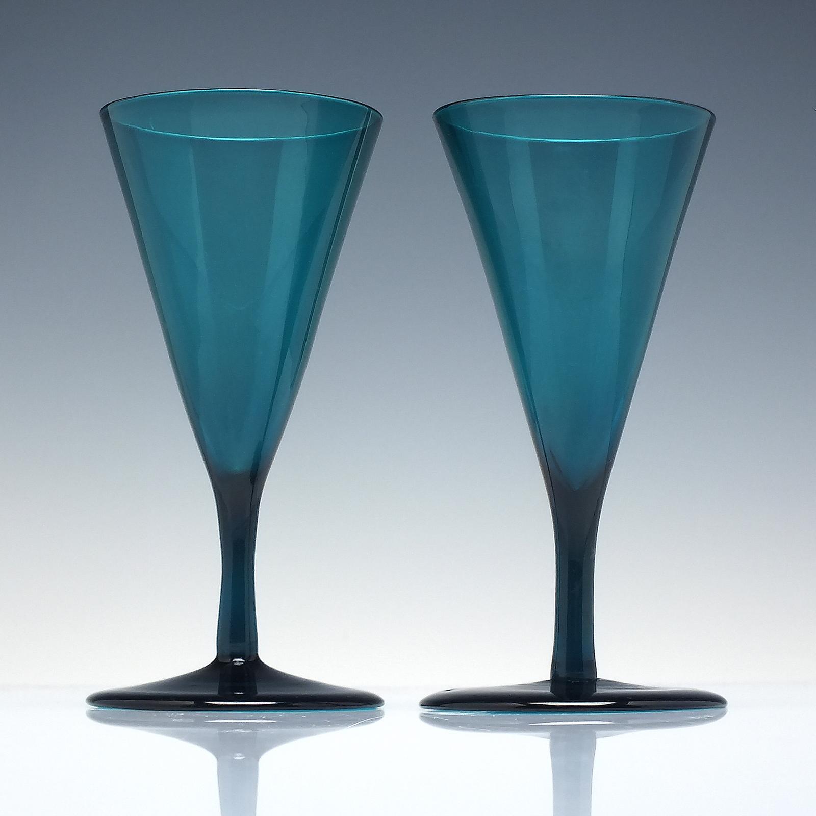 Pair of Georgian Peacock Blue Wine Glasses c.1820