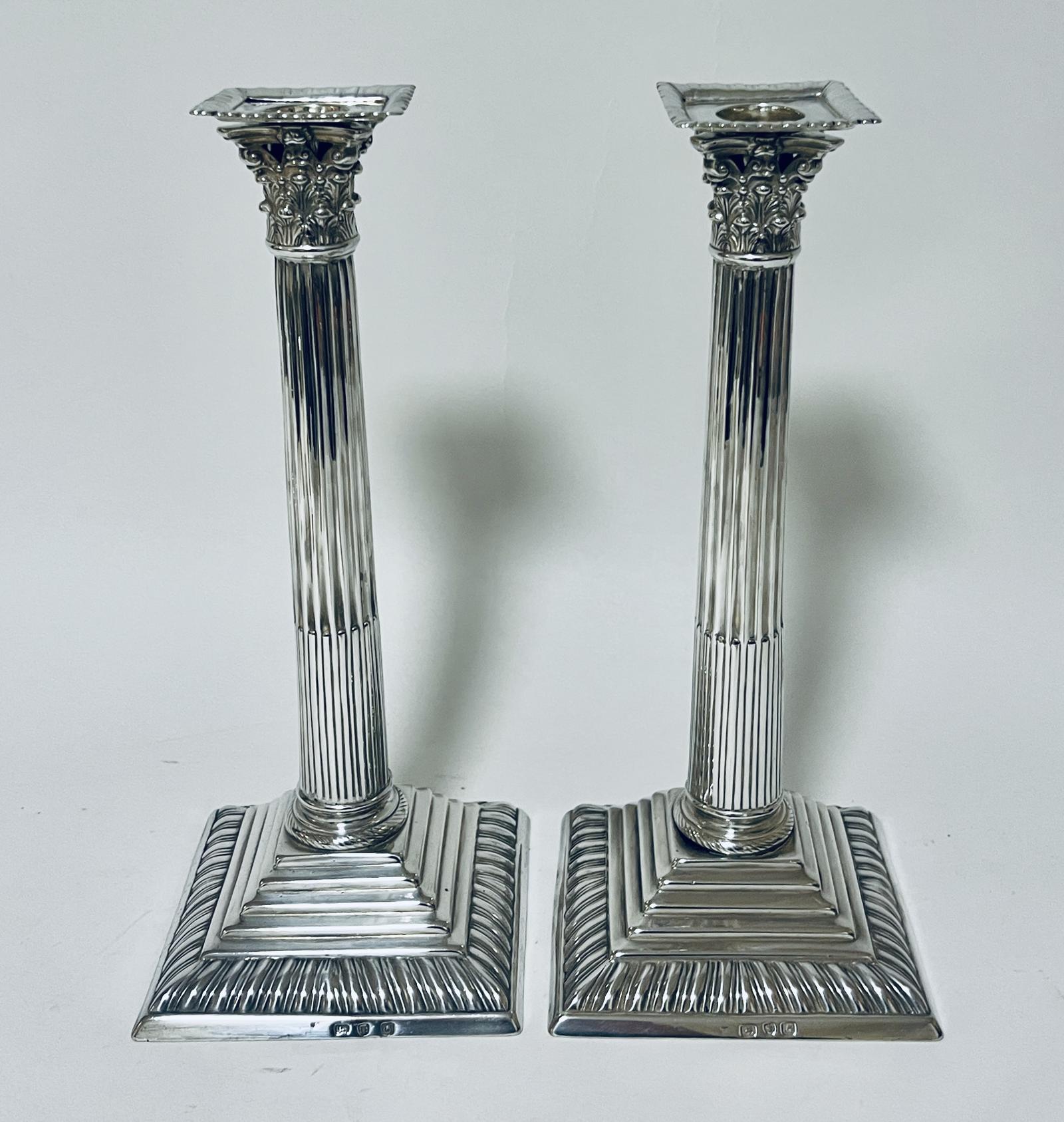 Pair of Georgian Silver Corinthian Column Candlesticks