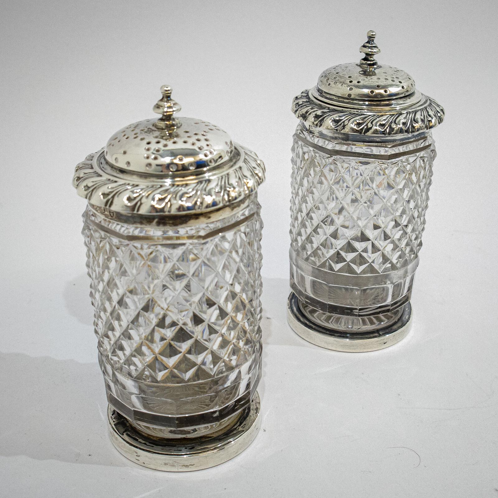 Pair of Georgian Silver & Cut Glass Pounce Pots