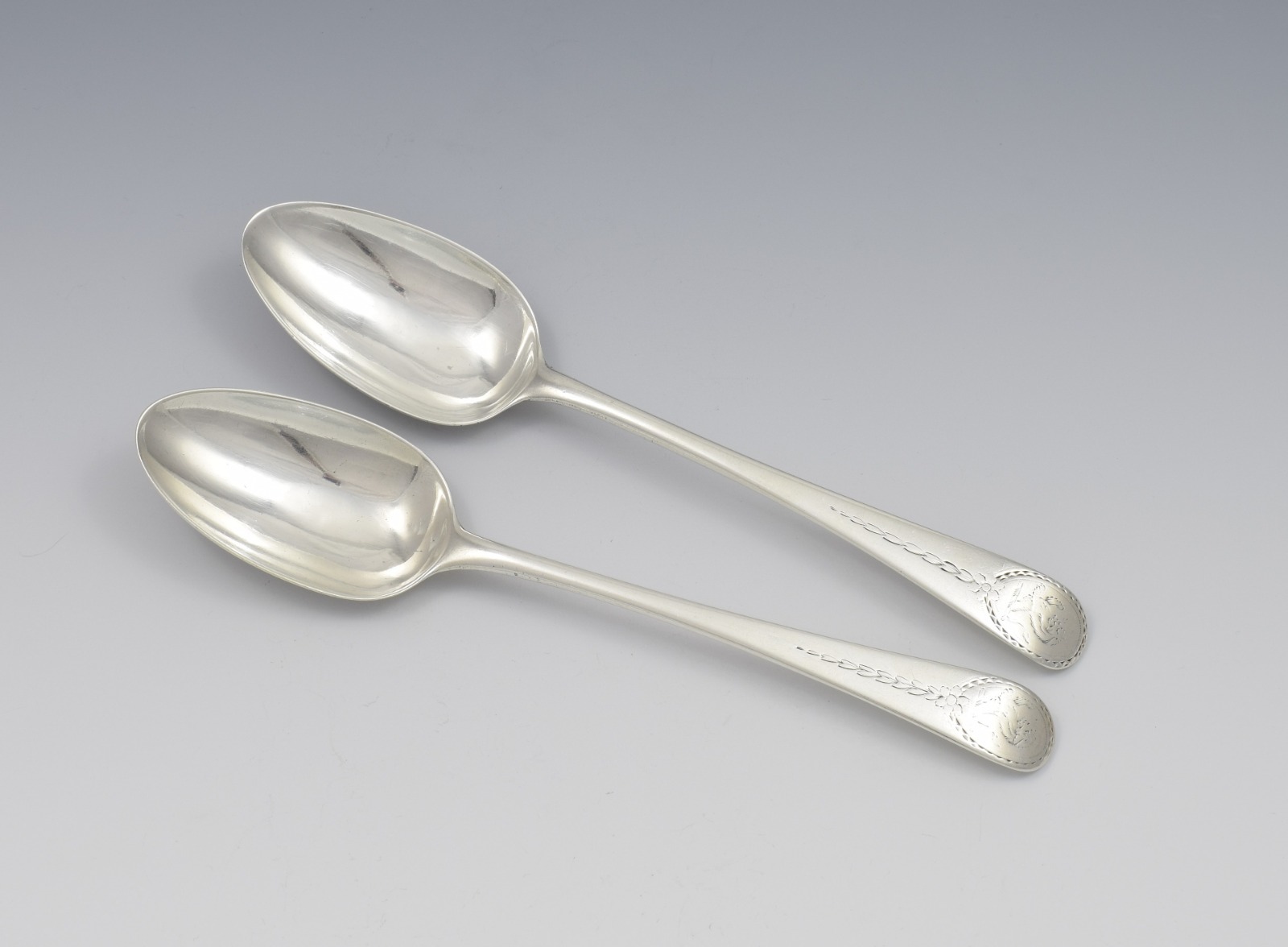 Pair of Georgian Silver Serving Table Spoons 1780 George Smith III