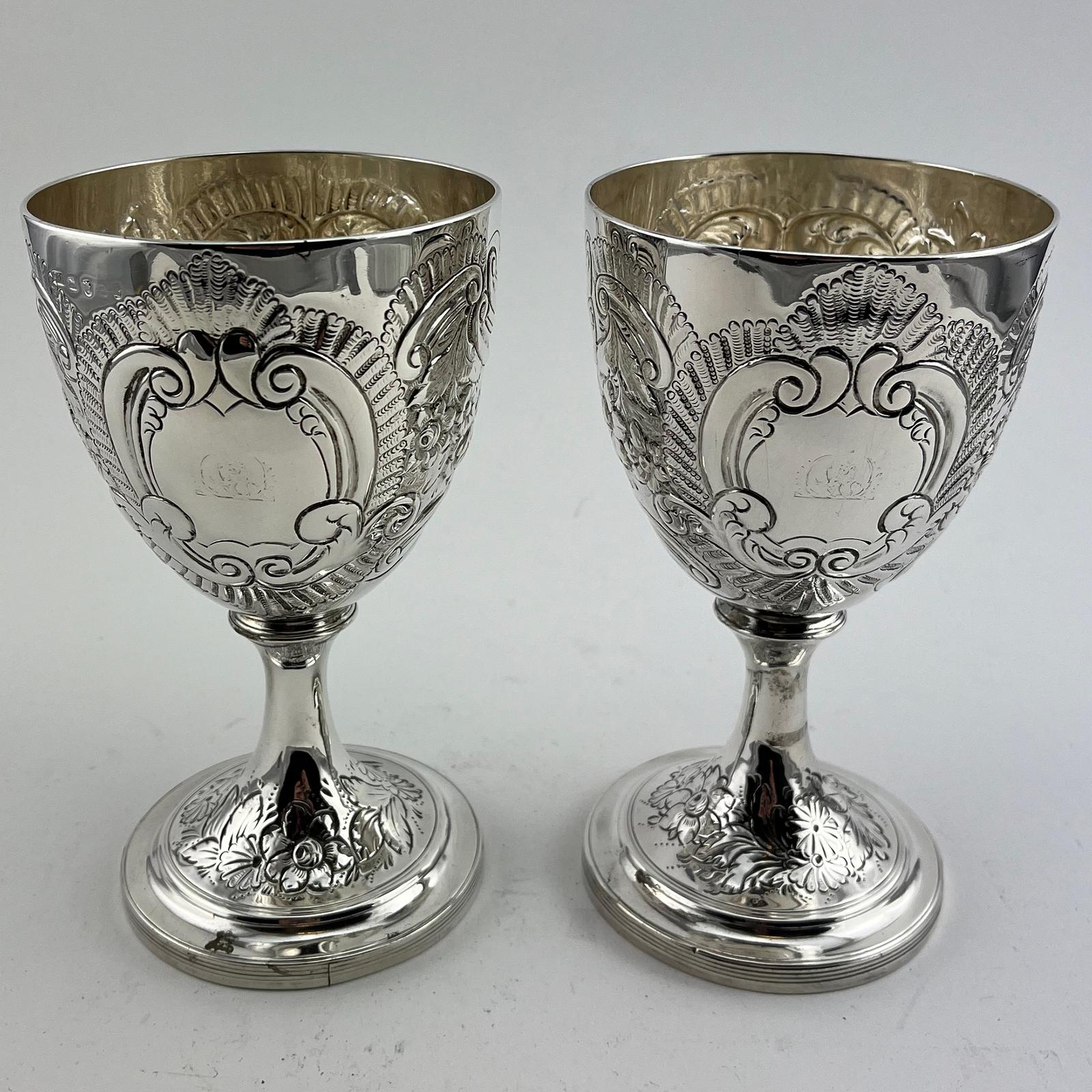 Pair of Georgian Sterling Silver Good Quality Goblets