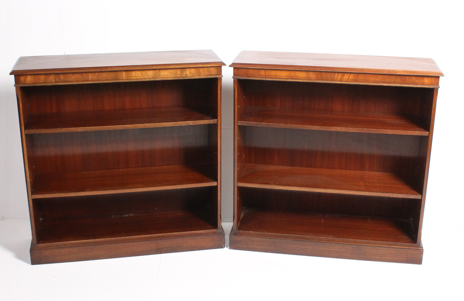 Pair of Georgian Style Bevan Funnell Reprodux Mahogany Open Bookcases