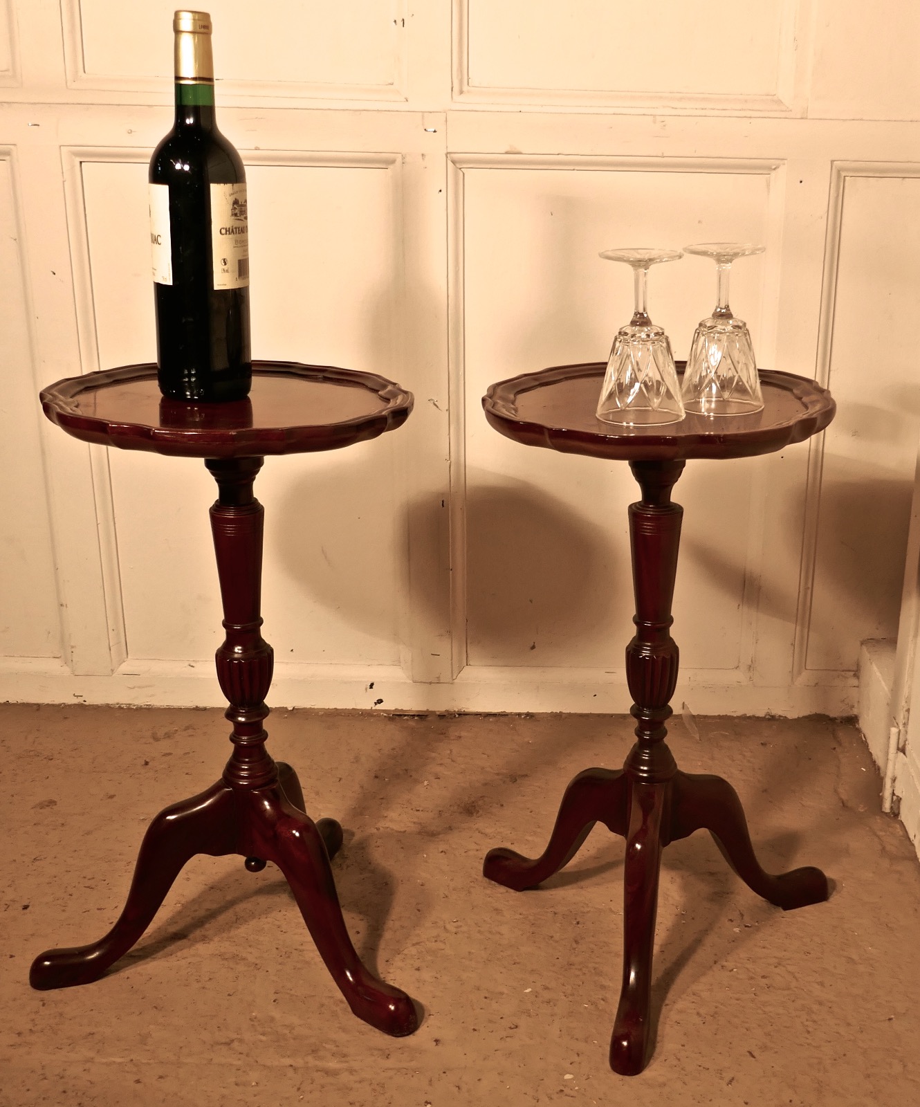Pair of Georgian Style Mahogany Tripod Wine Tables with Pie Crust Edge