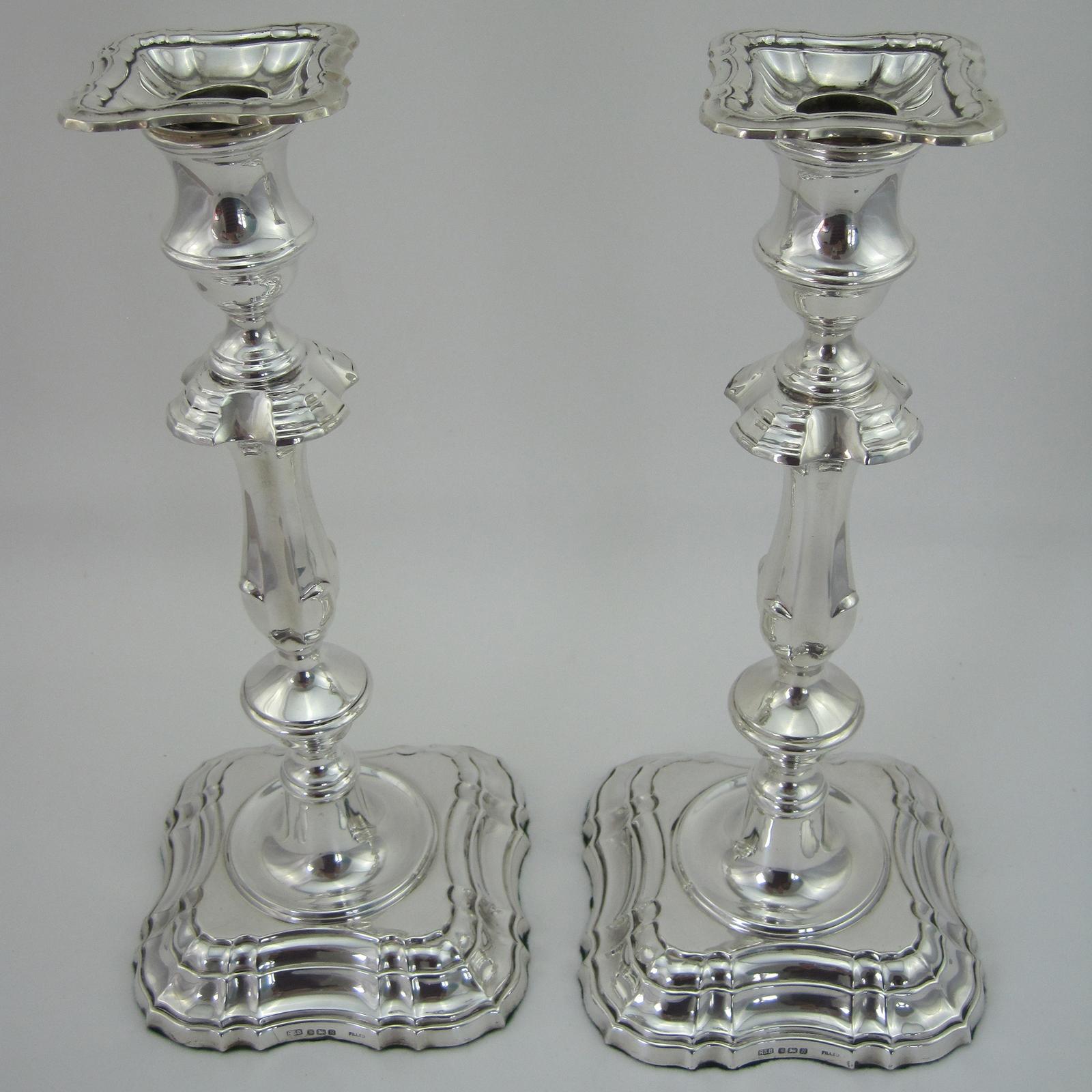 Pair of Georgian Style Sterling Silver Candlesticks