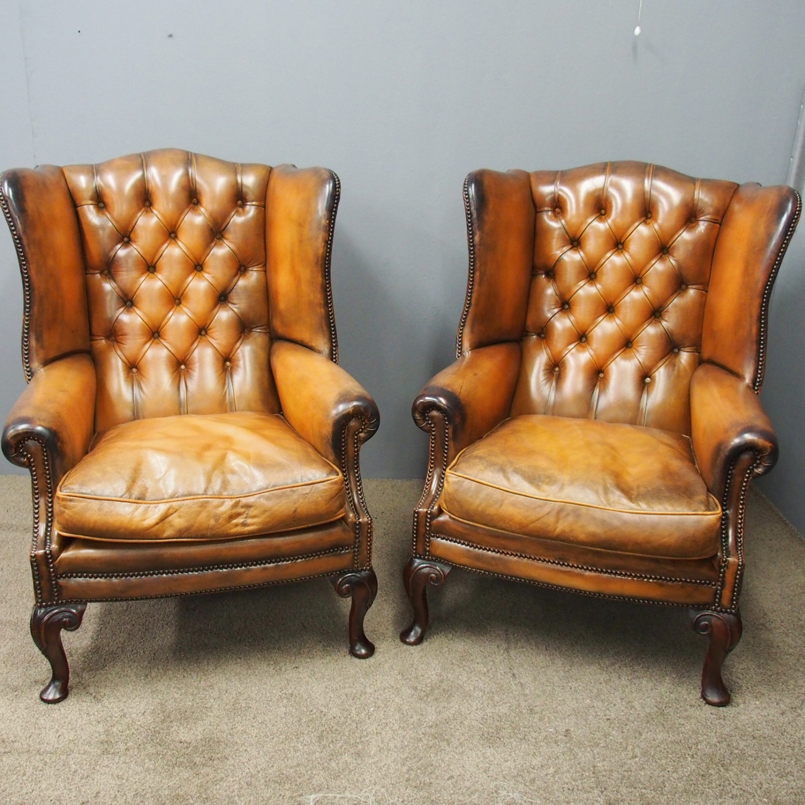 Pair of Georgian Style, Tan Leather Wing Chairs (1 of 1)