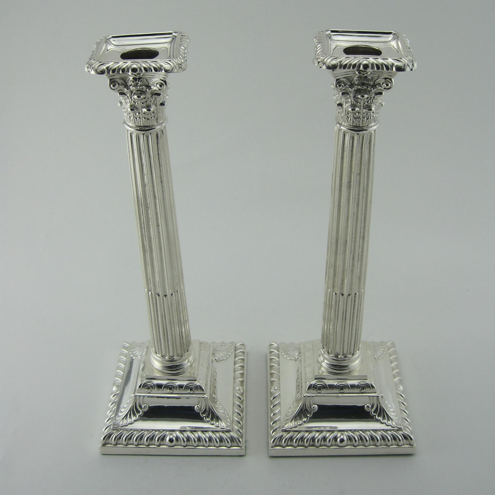 Pair of Georgian Style Victorian Silver Plated Candlesticks