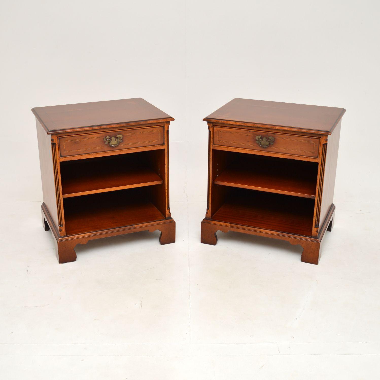 Pair of Georgian Style Yew Wood Bedside Cabinets