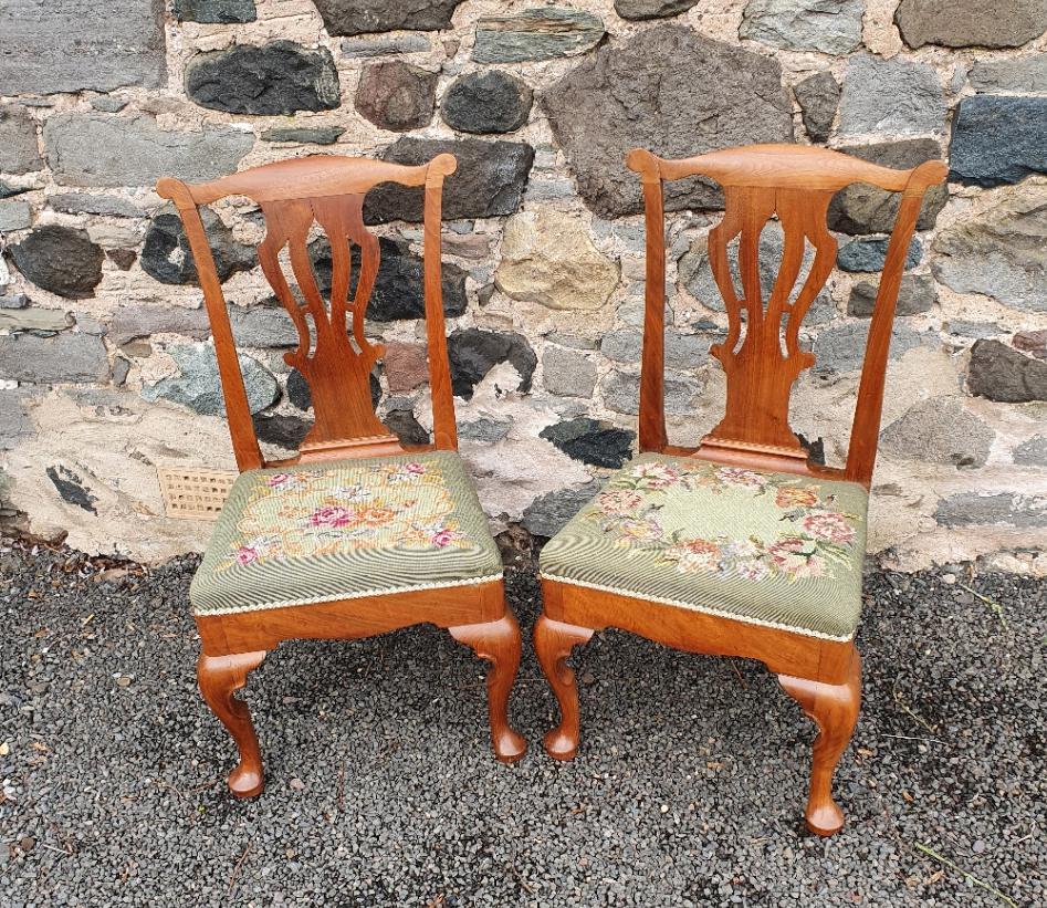 Pair of Georgian Walnut Cabriole Leg Chairs