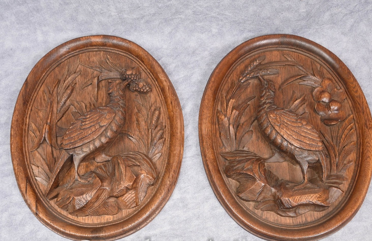 Pair of German Black Forest Carved Game Bird Plaques Pheasant 1910