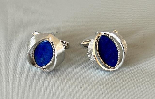 Pair of German Silver & Lapis Lazuli Vintage Cufflinks