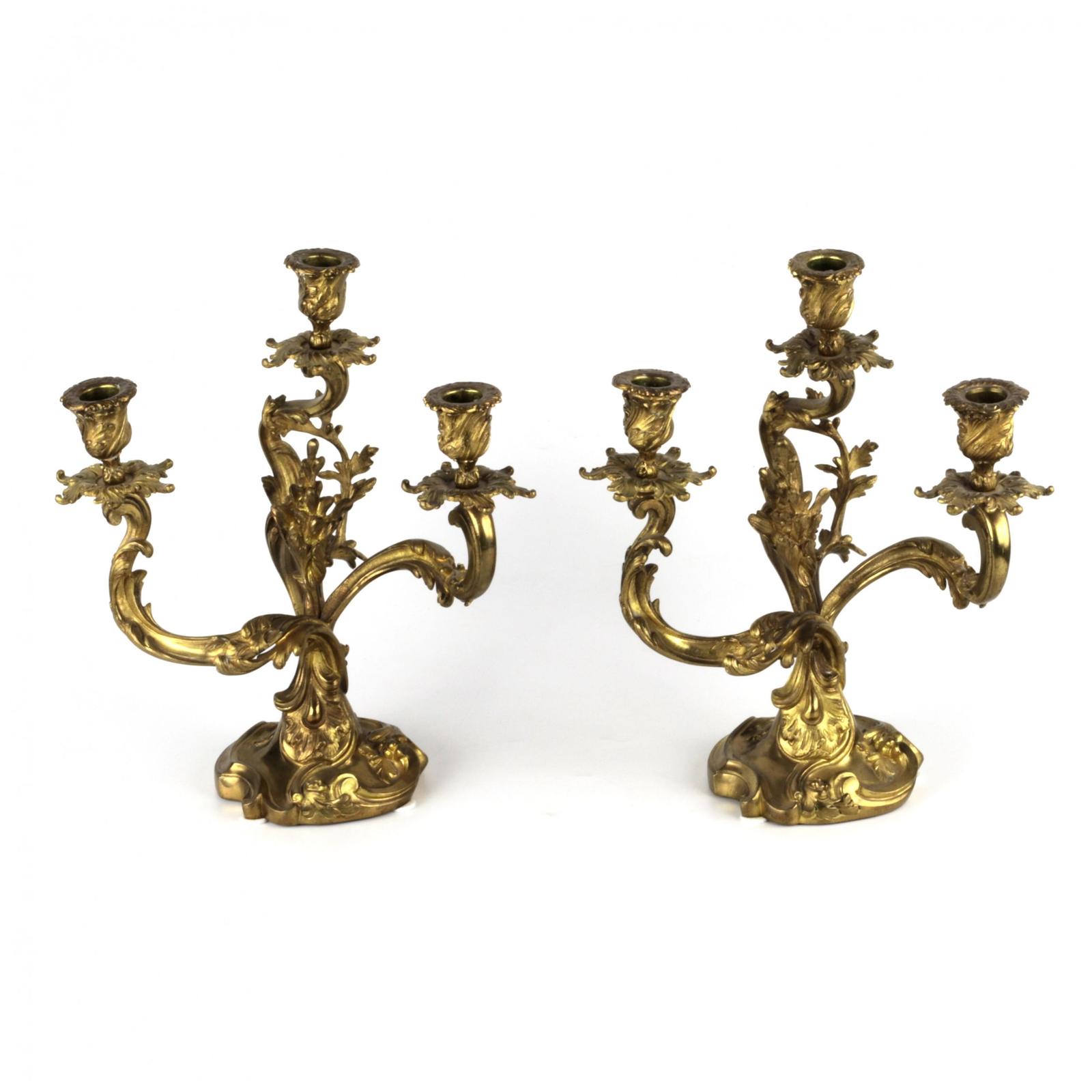 Pair of gilded bronze rocaille candelabra.