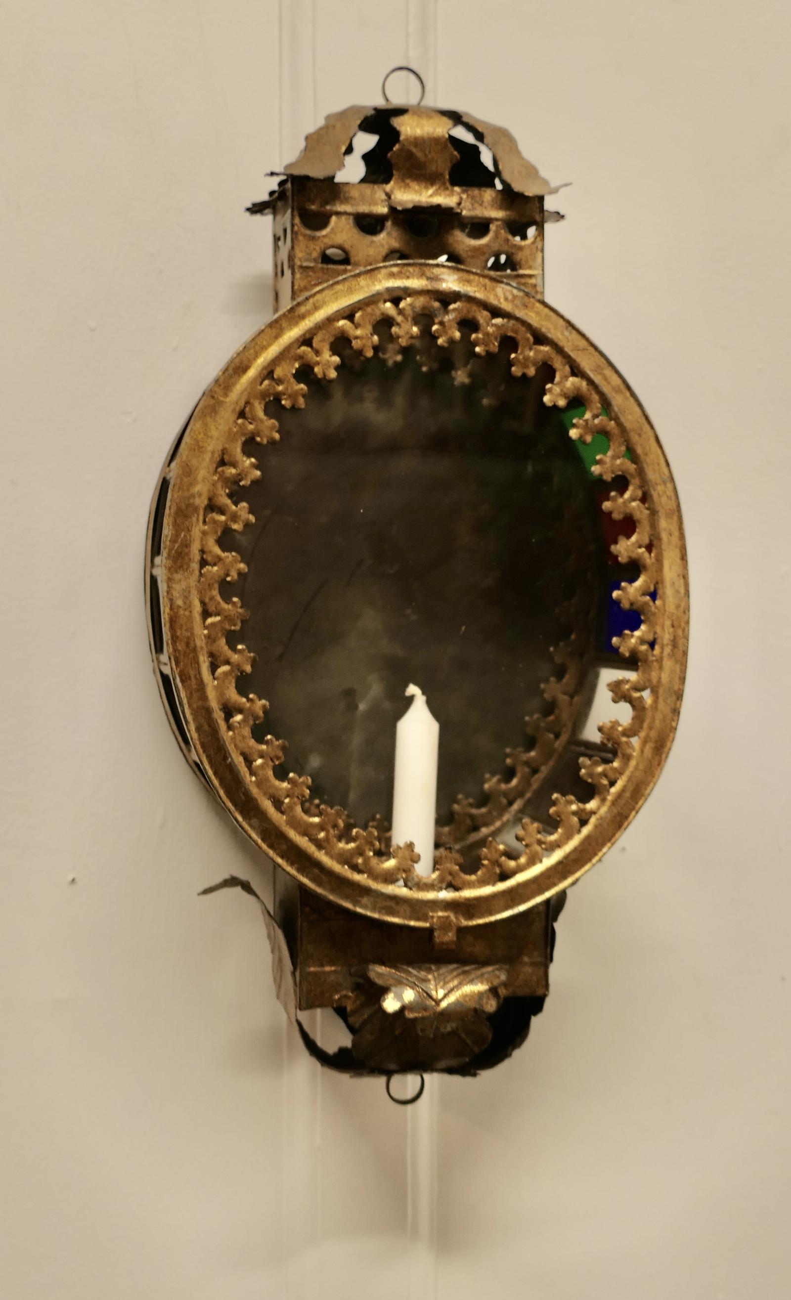 Pair of Gilded Toleware Wall Lanterns Candle Sconces