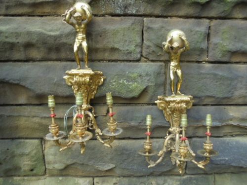 Pair of Gilded Wall Lights Atlas Holding The World c.1920