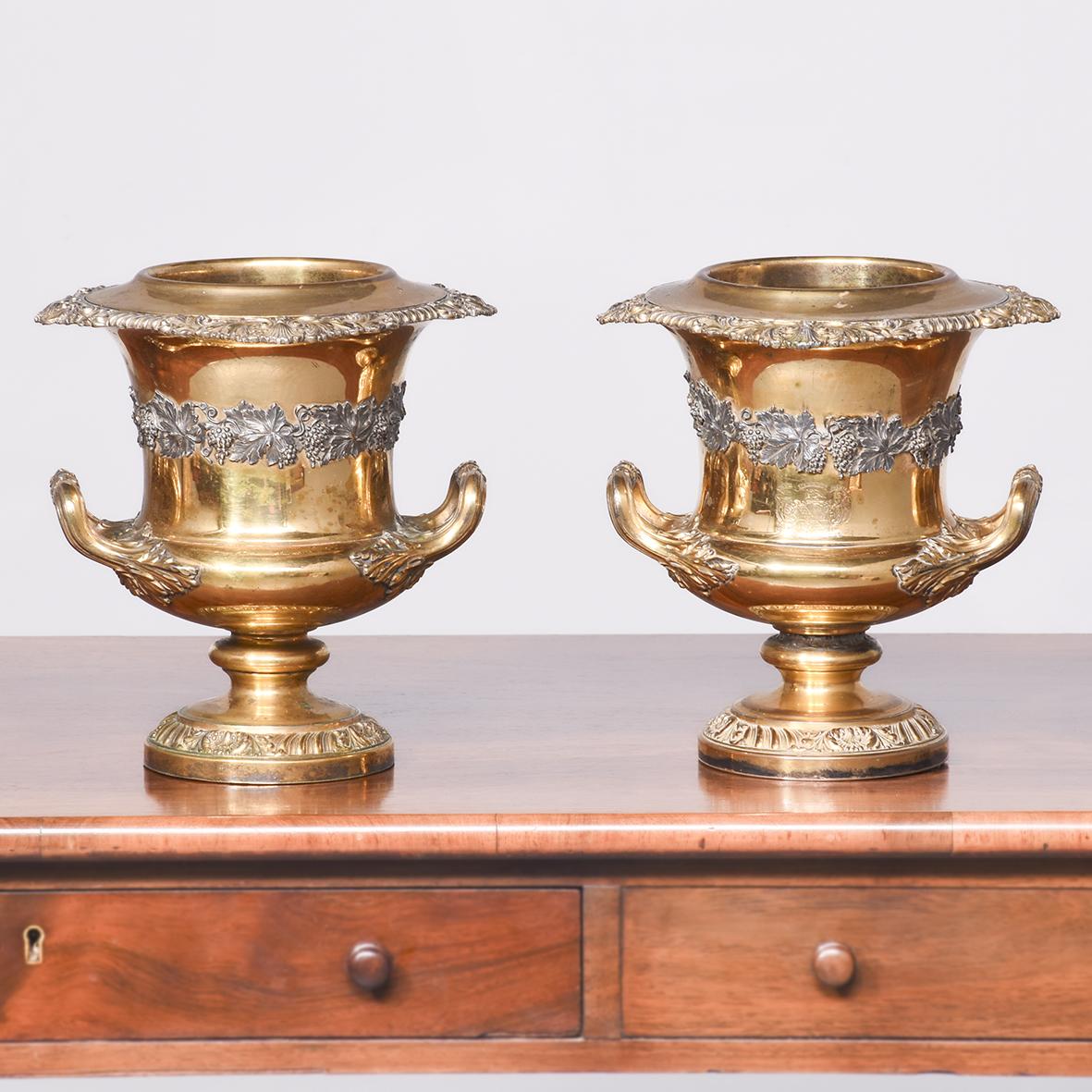 Pair of Gilded Willian IV Campana Shaped Wine Coolers