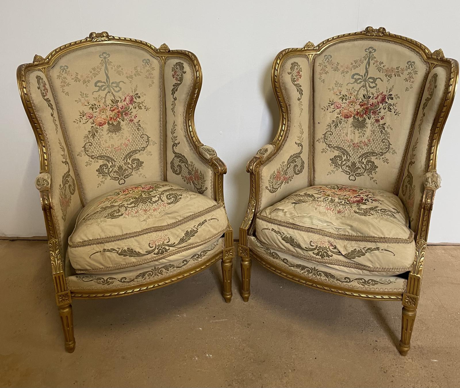 Pair of Gilt Wood Fauteuils / Arm Chairs