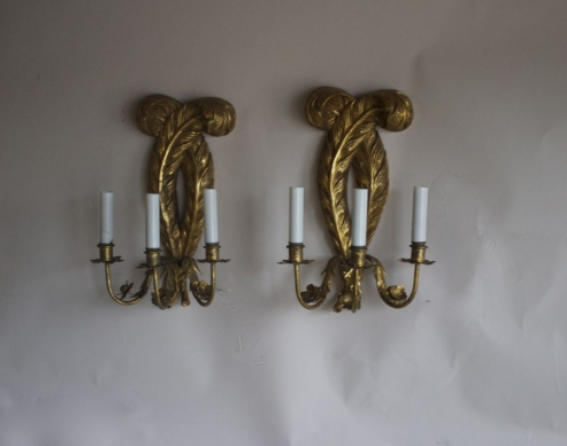 Pair of Giltwood Fleur De Lys Sconces
