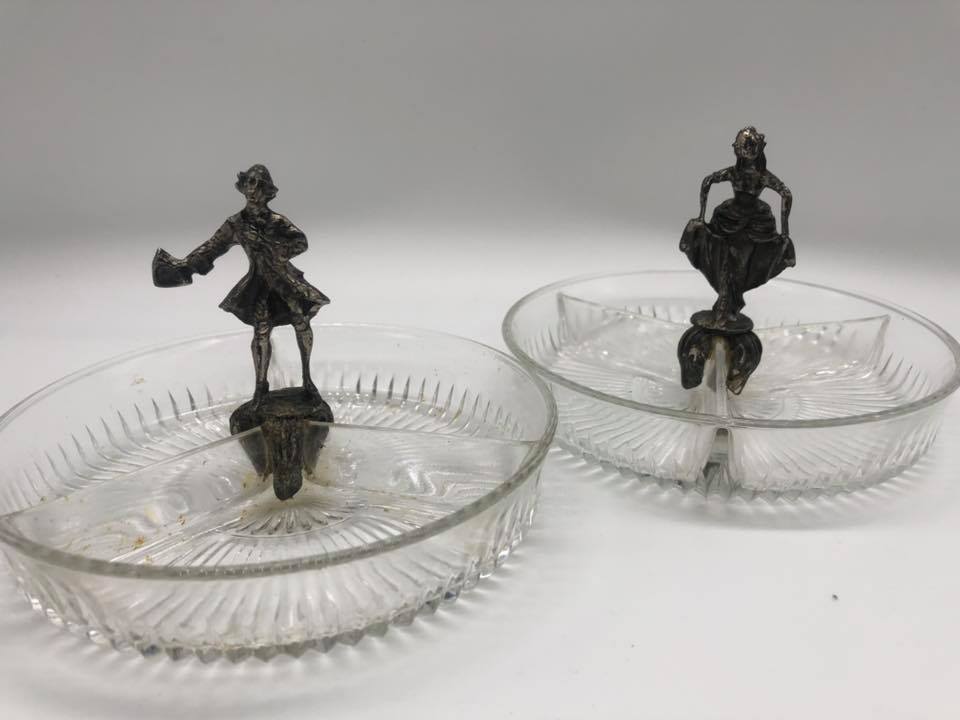 Pair of Glass & Spelter Hors D’Oeuvre Dishes