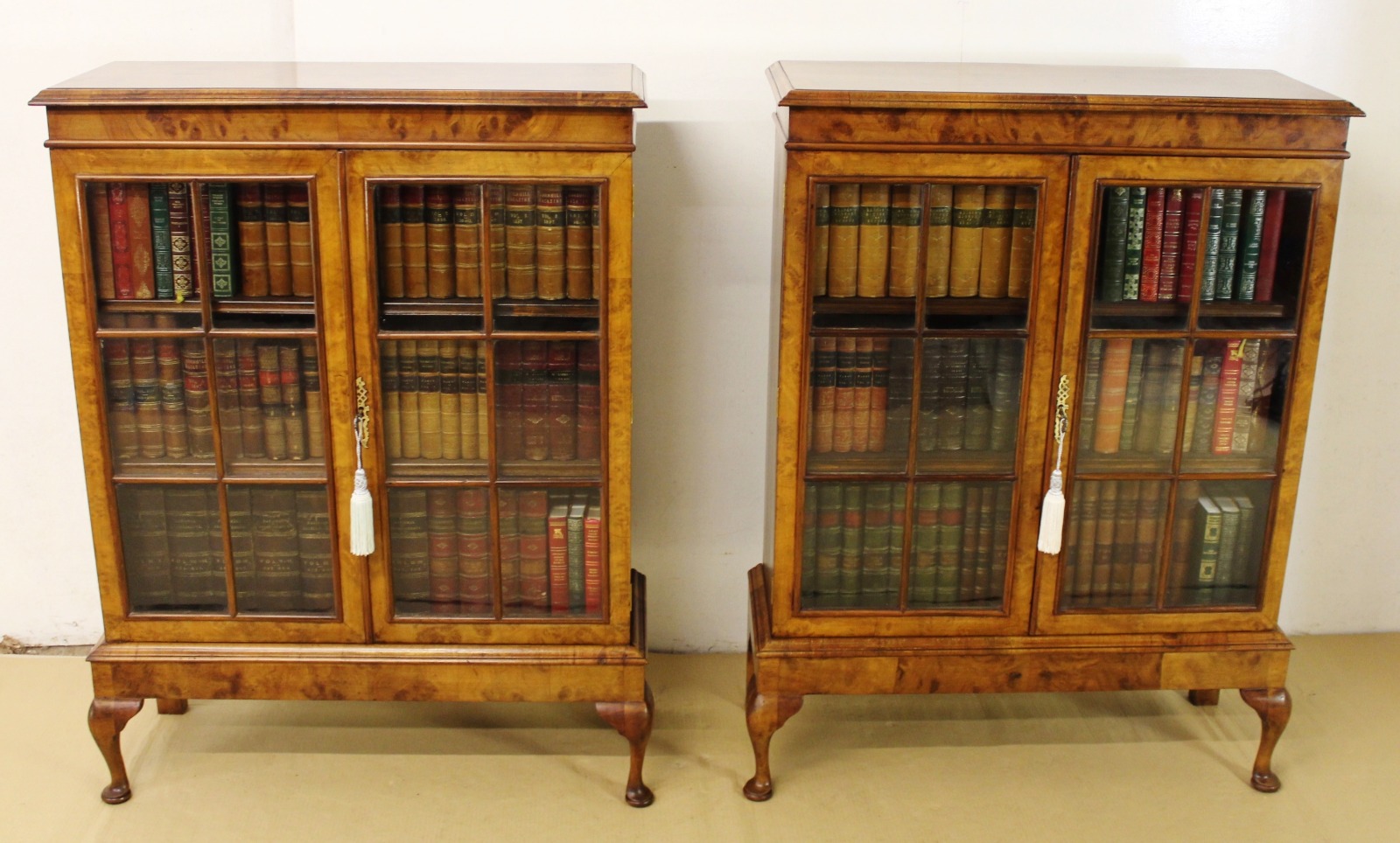 Pair of Glazed Burr Walnut Antique Bookcases (1 of 1)