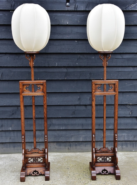 Pair of Good Quality 20th Century Chinese Elm Floor standing Lamps