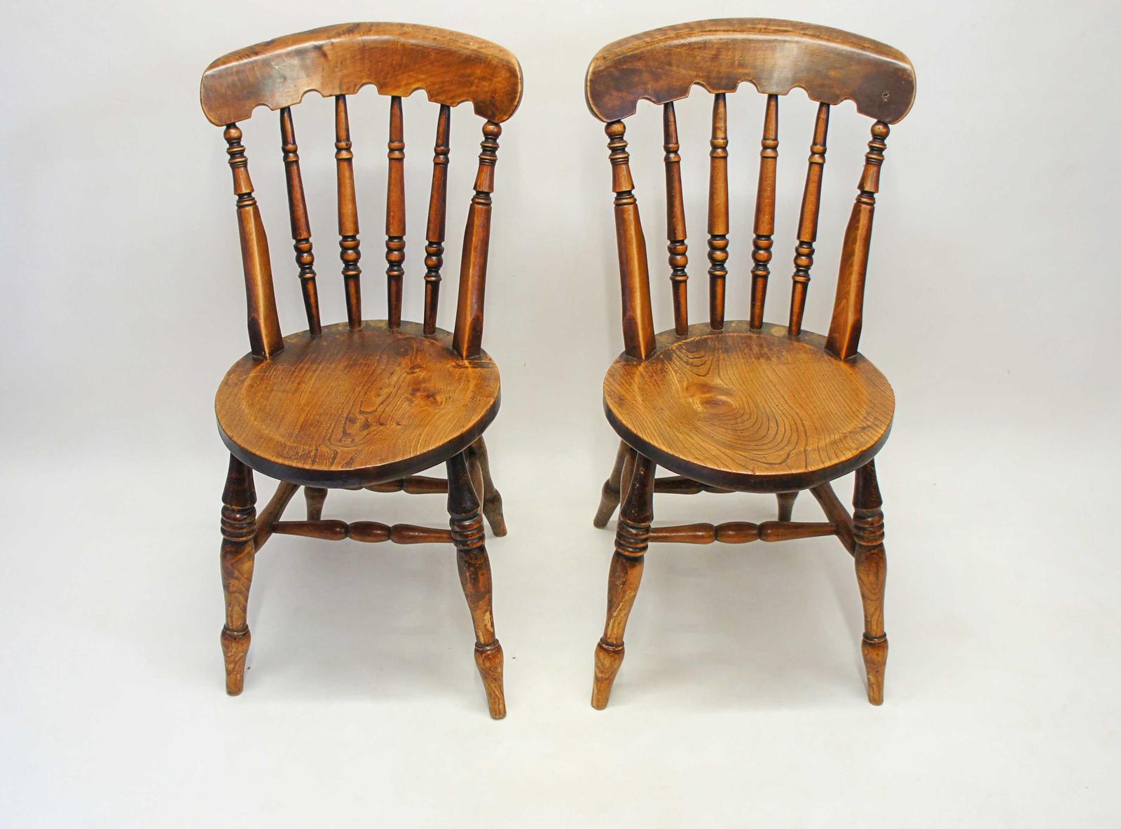 Pair of Good Quality Victorian Windsor Spindle Back Kitchen Chairs in Beech & Elm