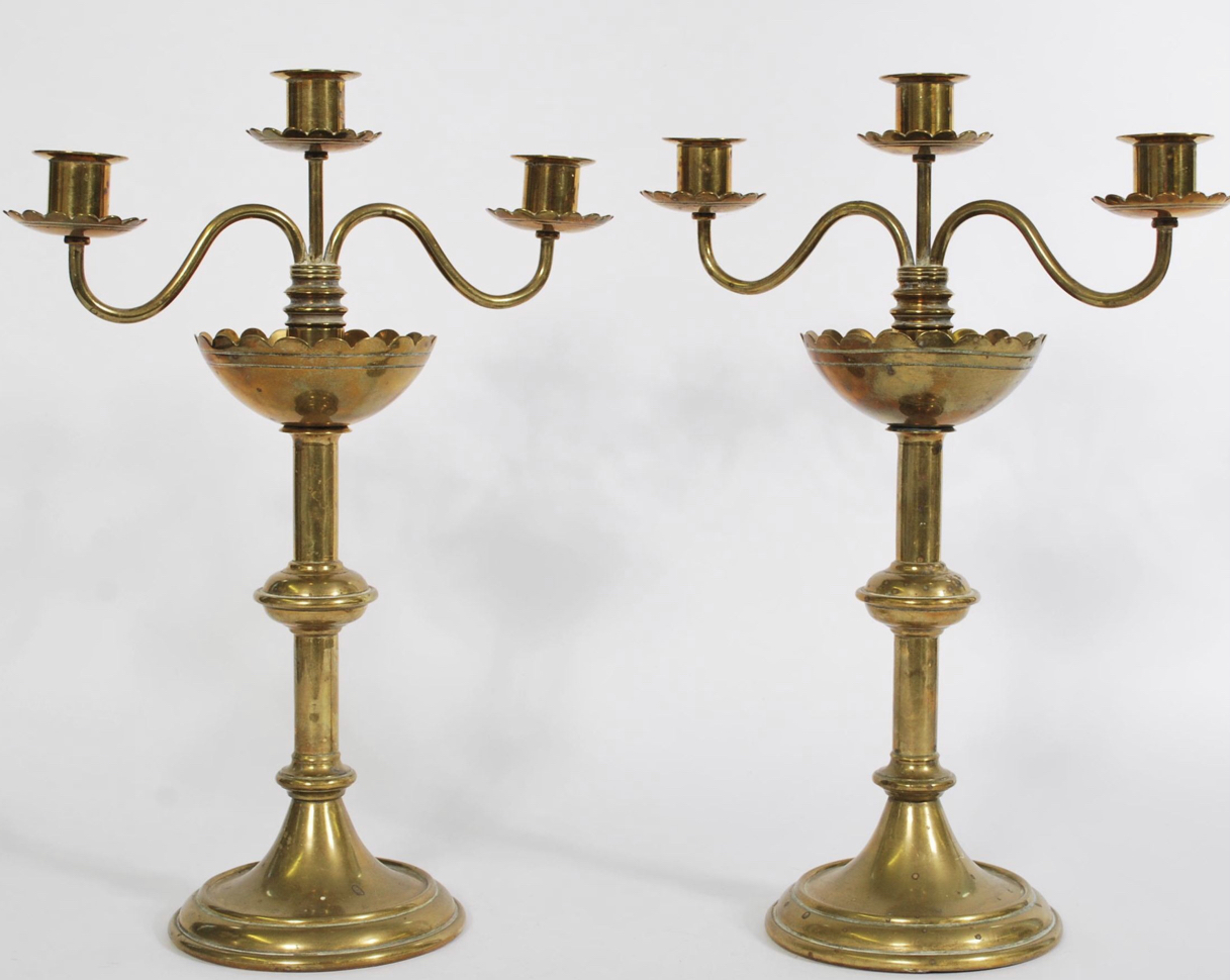 Pair of Gothic Brass Candelabras c.1890
