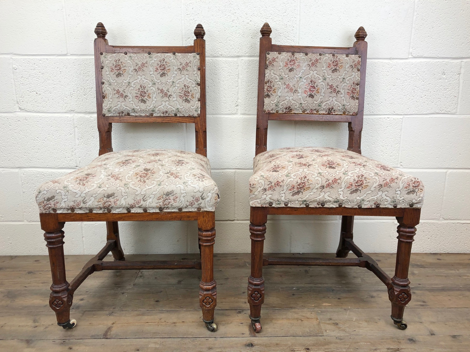 Pair of Gothic Oak Chairs with Floral Upholstery (1 of 10)