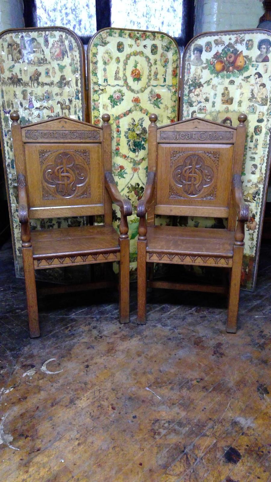 Pair of Gothic Revival Impressive Oak Throne Chairs